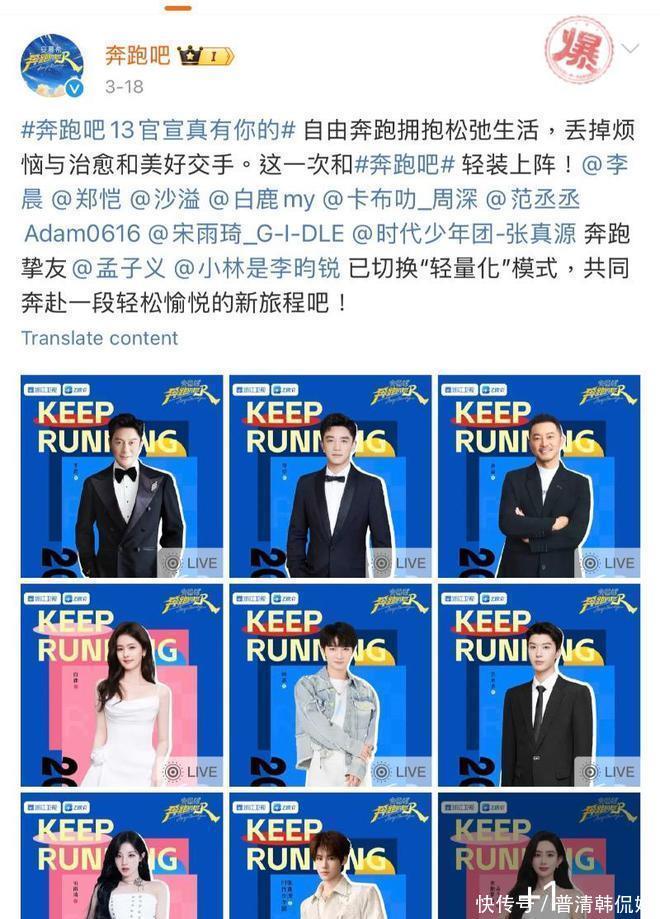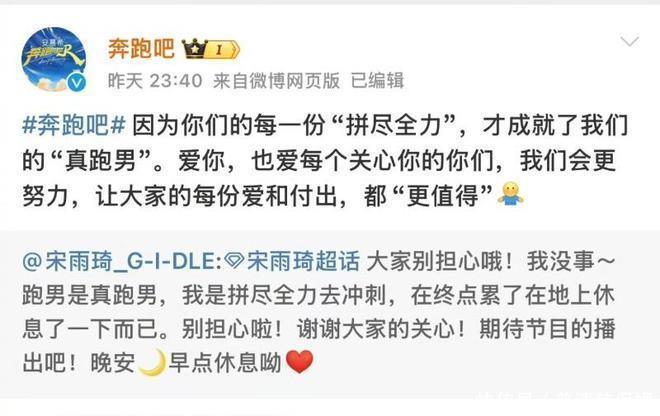 而《奔跑吧》节目官博也立刻转发。